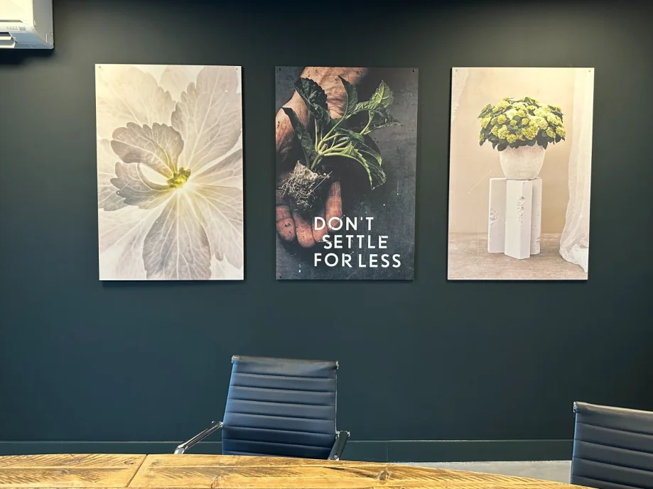 Printen op hout biedt ook een geweldige manier om jouw bedrijf of merk te promoten. Met aangepaste bedrijfslogo's, productafbeeldingen of inspirerende citaten op hout, kun je een unieke en gedenkwaardige indruk achterlaten bij jouw klanten. Heb je al houten panelen op kantoor? Dan is juist een metaal- of kunststof accent erg tof!
